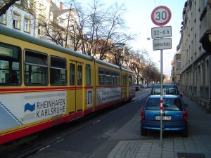 En Allemagne la ville de Karlsruhe, dont l’intégralité des quartiers sont aménagés en zone 30 ou zone de rencontre, possède déjà quelques boulevards limité à 30 km/h de 22h à 6h (photo). C’est aussi le cas de Berlin, Dresde, Rostock, Freiburg.
