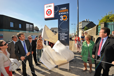 Jeudi 13 septembre, le quartier Saint Serge/Ney/Chalouère était le premier à inaugurer ses zones 30. Pour boucler ce dispositif : 90 rues ont été aménagées et marquées au sol, 20 double-sens vélos créés, 11 totems d’entrée de quartier installés…. Tout ceci pour inciter l’automobiliste à lever le pied. « Les enjeux des zones 30, ce sont la sécurité, une cohabitation plus sereine entre les usagers de l’espace public, notamment les personnes les plus vulnérables comme les enfants, les personnes âgées, les cyclistes… En filigrane, aussi, le souhait que chacun revoit sa façon de se déplacer pour favoriser d’autres modes, en plus du tram et du bus, la marche, le vélo, au profit de quartiers apaisés où le lien social et les rencontres retrouvent du sens », expliquait le maire, Frédéric Béatse.