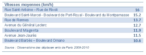 Quelques chiffres sur les vitesses pratiquées à Paris