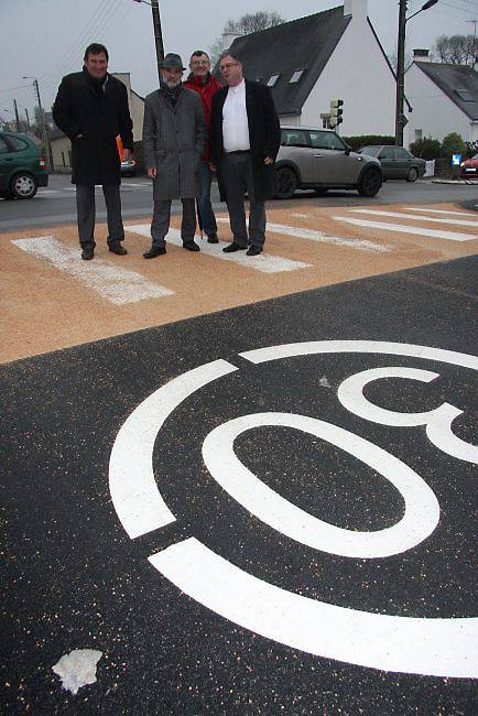 « On entre dans une phase concrète de notre plan hiérarchisation des voies », se félicite le maire Guy Roussel. Depuis l’an dernier, les quartiers passent au ralenti pour préverver la quiétude de leurs résidants. Les axes principaux sont maintenus à la vitesse de 50 km/h. A l’intersection de la rue du Pont-Neuf et de la rue de la Libération, l’entrée dans la zone 30 est désormais matérialisé au sol par un enrobé couleur sable, un 30 peint sur le sol et un panneau de signalisation. « Tant que l’automobiliste n’a pas franchi un autre espace du même type, c’est qu’il est toujours en zone 30 ! »