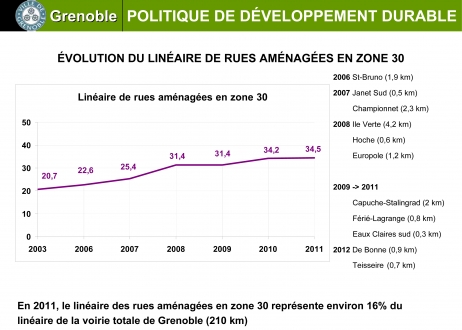 À Grenoble, les zones 30km/h ont été mises en place il y a dix ans déjà. Dès 2003, la ville a mis en place plus de 20 kilomètres de voiries limitées à 30km/h.