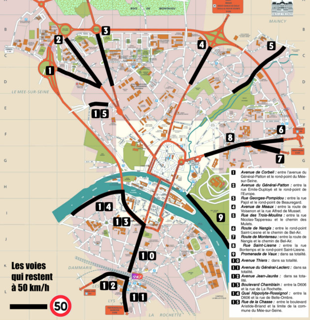 La ville de Fontainebleau a été la première de Seine-et-Marne à imposer la vitesse maximale de 30 km/h dans l’ensemble de son centre qui compte moins de rues car il est moins étendu que celui de Melun. Les boulevards extérieurs de la cité impériale restent limités à 50 km/h. La décision de la municipalité bellifontaine remonte à septembre 2010.