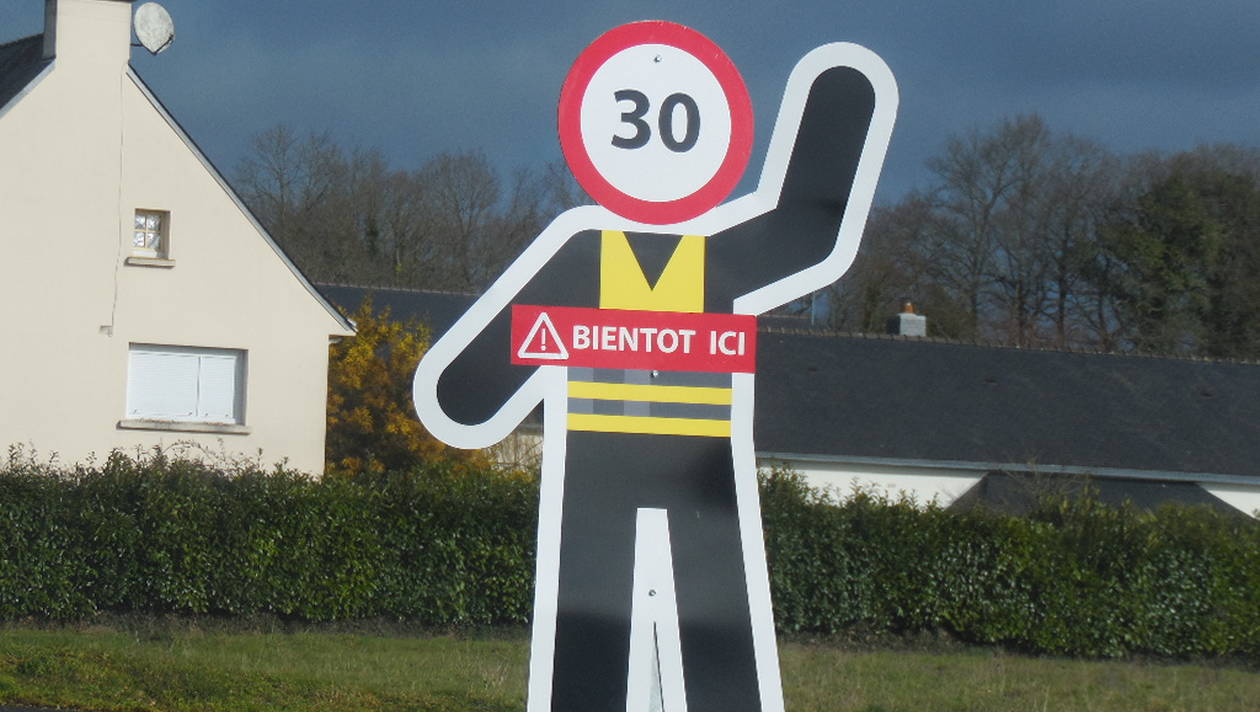 La limitation de la vitesse à 30 km/h commence et se termine à toutes les entrées et sorties de la ville : Kermaria, Trois soleils, Jardins du Moustoir, Flumir, Le Couedic, Leslégot et Kergroix.