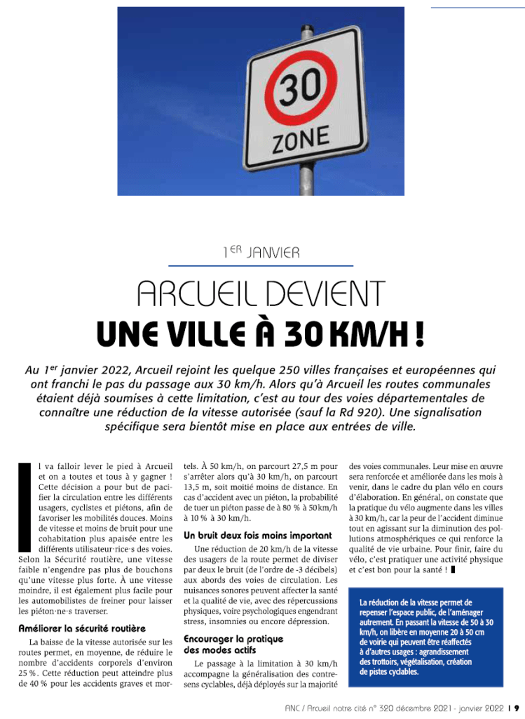 Au 1er janvier 2022 Arcueil a rejoint le club des villes 30 !